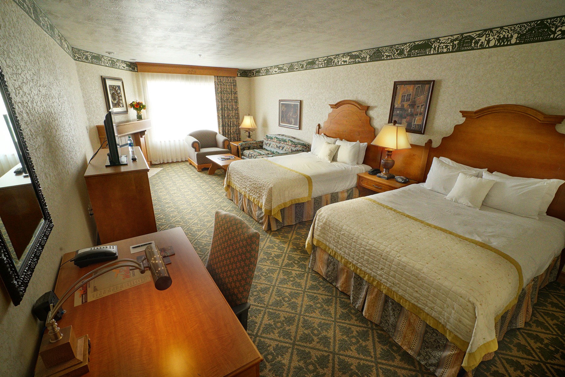 Zimmer: Die 300 Zimmer verfügen über WLAN, einen Flachbildfernseher mit Kabelempfang, einen Schreibtisch und private Badezimmer mit Quellwasserbädern.
